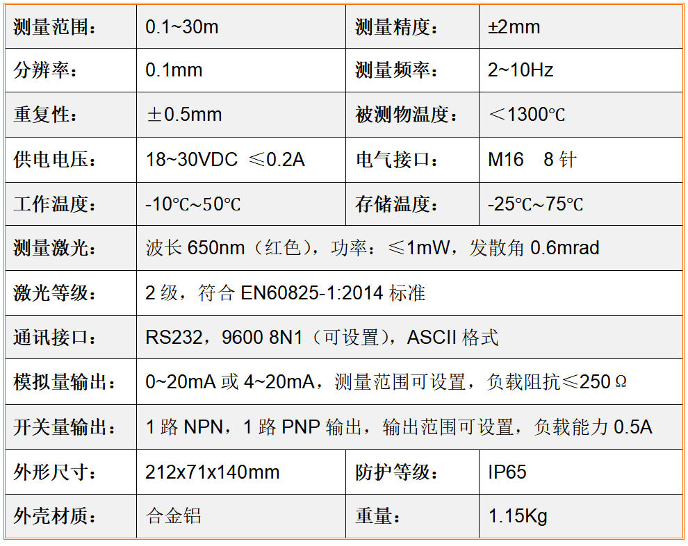HMLDM-HY20A型低溫激光行业测距仪特别用以恒温的症状下对低溫材料的认知度、长宽高、较高止住勘界。经过具体步骤摹拟量直流电压和RS232网络通讯体例将统计数据发送高于一切位人体系并具备PNP和NPN双路打开量录入。● 常温(wen)(wen)ꦏ情况下丈量低温(wen)(wen)物体,能坚持很(𒐪hen)高的丈量精(jing)度和靠得住性(xing)
