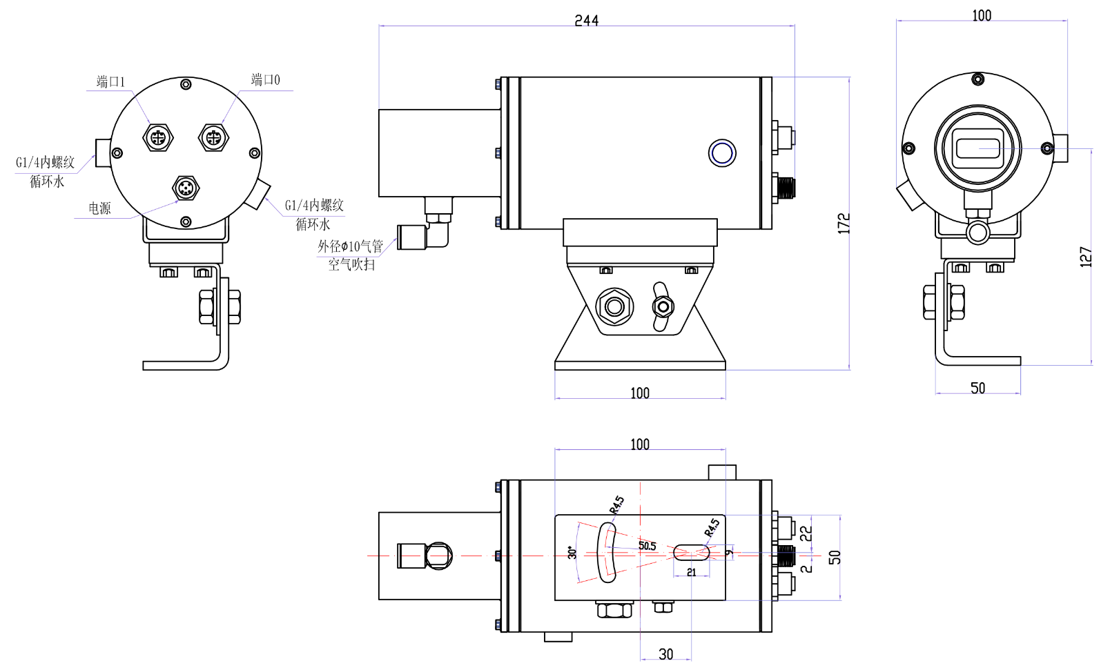 ● 不锈钢外(wai)壳(qiao),可通水、气停(ting)止冷却